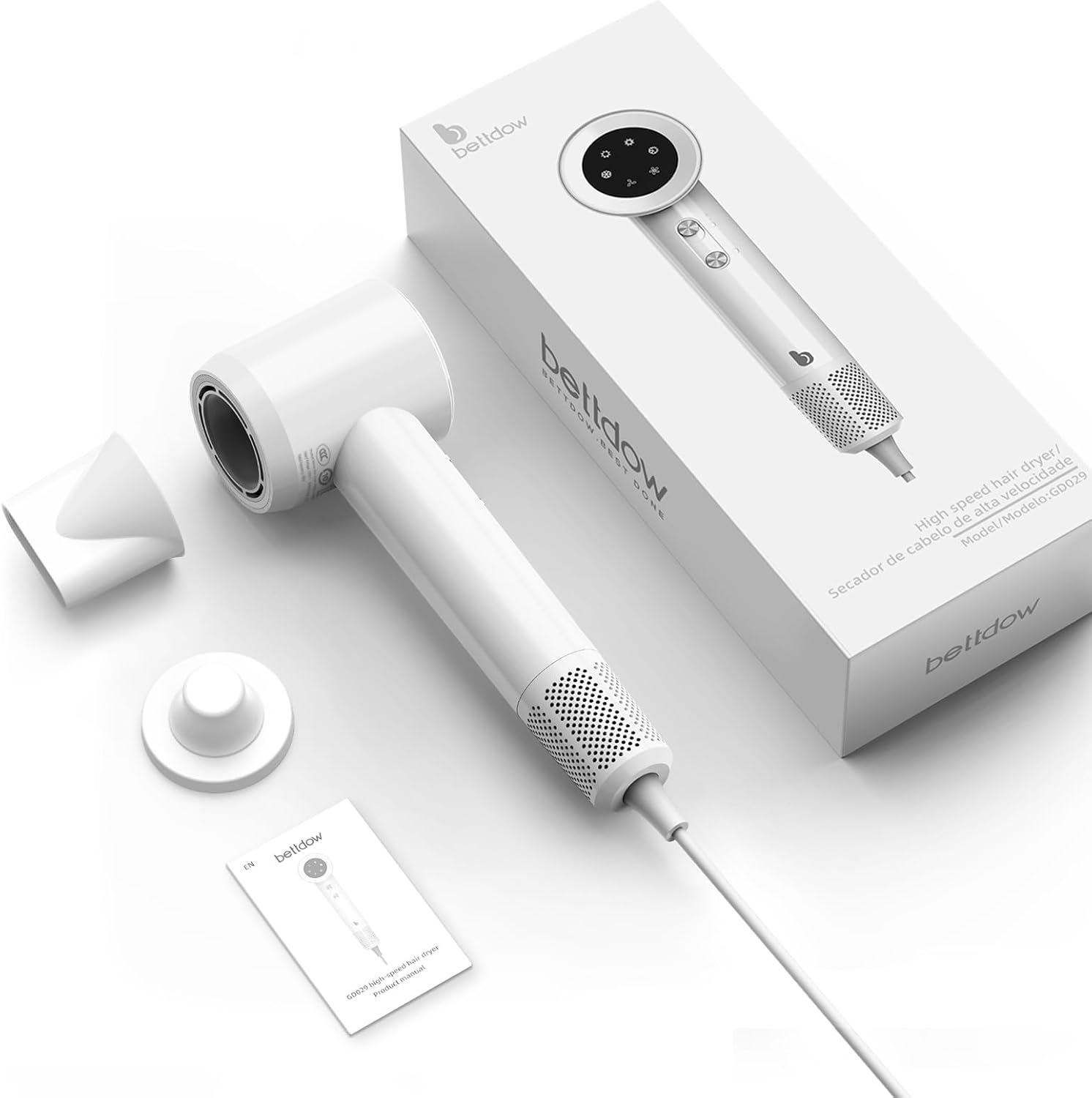 O secador BettDow é um secador de cabelo profissional com motor digital de 120.000 RPM, capaz de secar os fios de 2 a 5 minutos com fluxo de ar ultrapotente. Com 200 milhões de íons negativos, ele elimina o frizz, protege os fios e promove brilho intenso enquanto mantém uma experiência silenciosa e confortável. Um secador leve, moderno e inteligente — feito para quem exige tecnologia de ponta em cuidados pessoais.