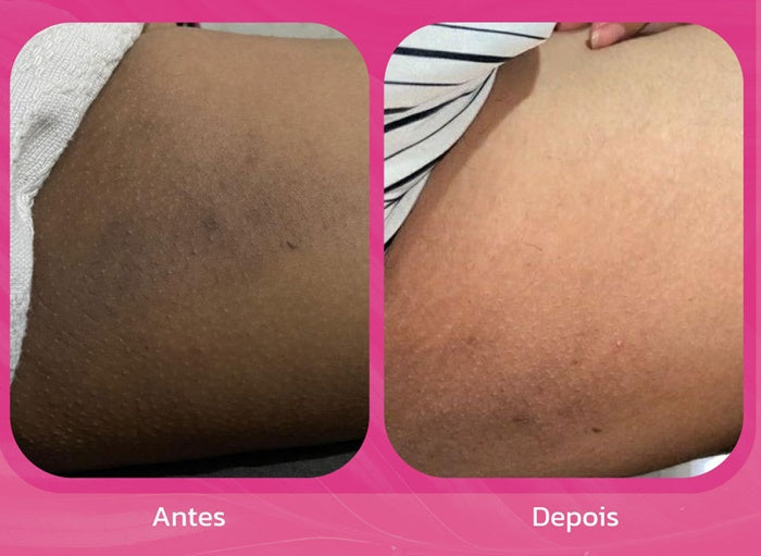 Pode ser aplicado também em áreas como axilas, coxas e virilhas, ampliando os benefícios de clareamento e hidratação.